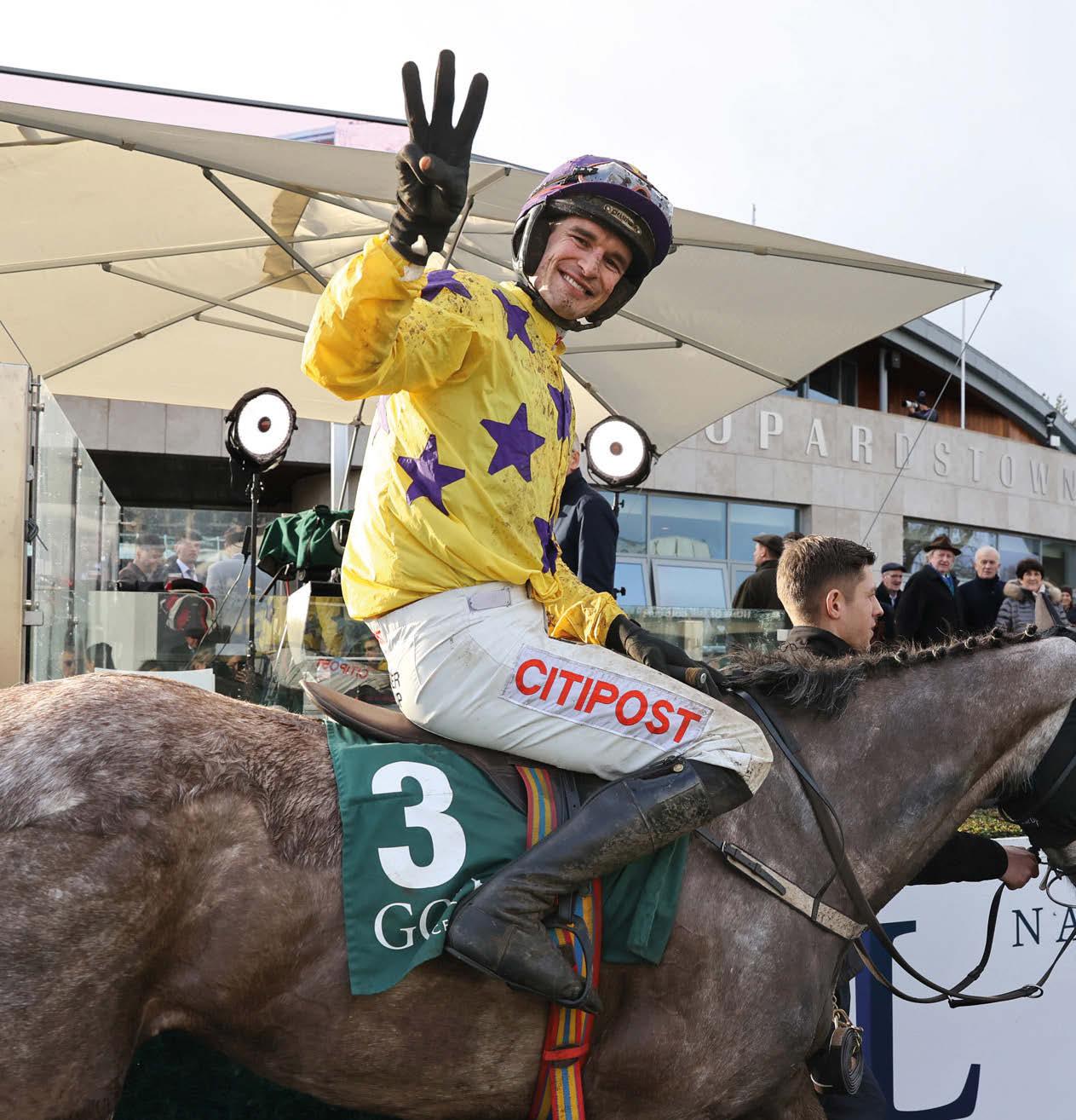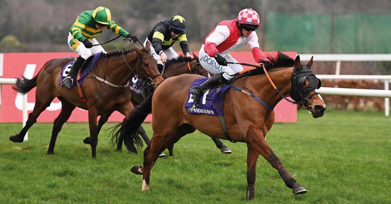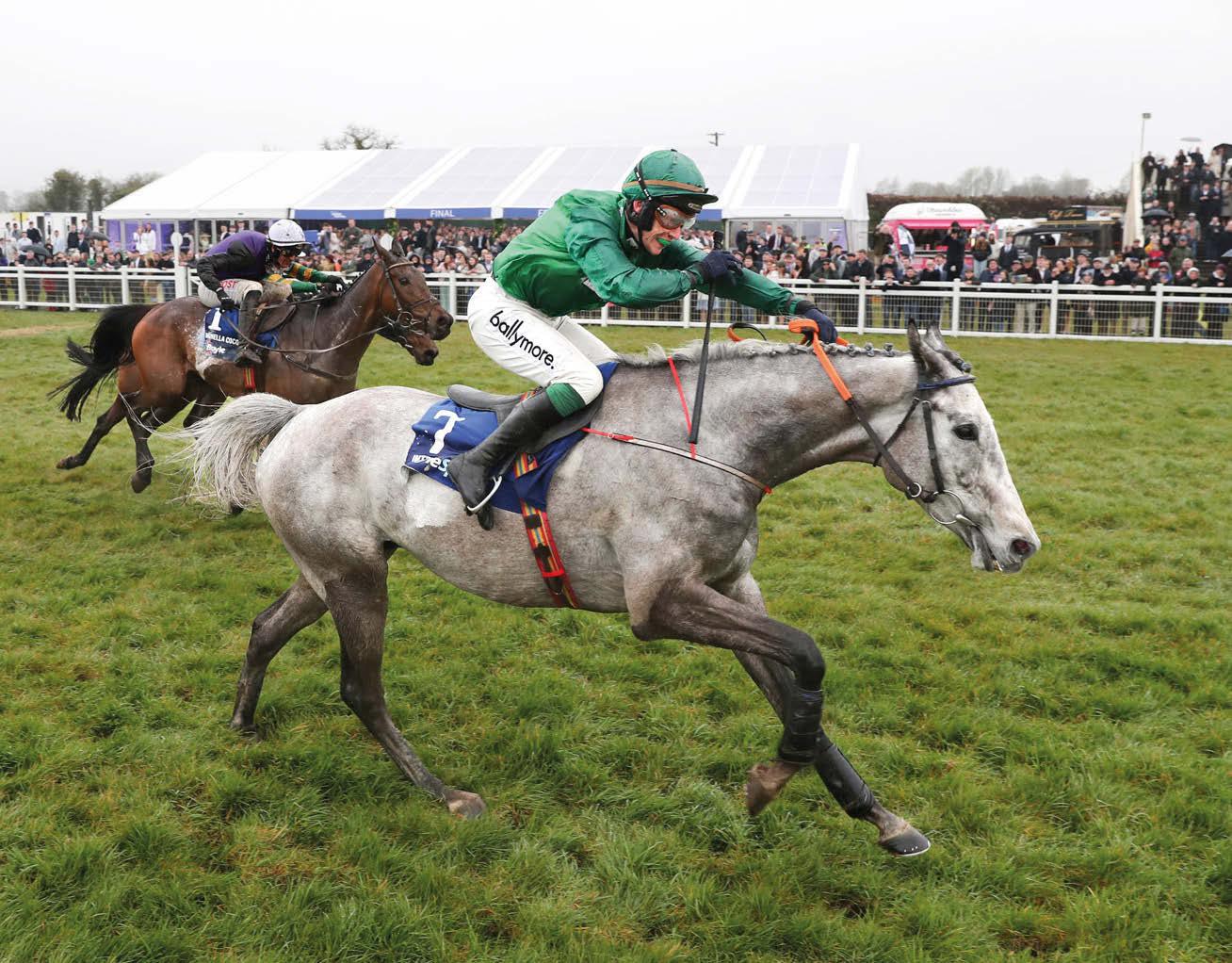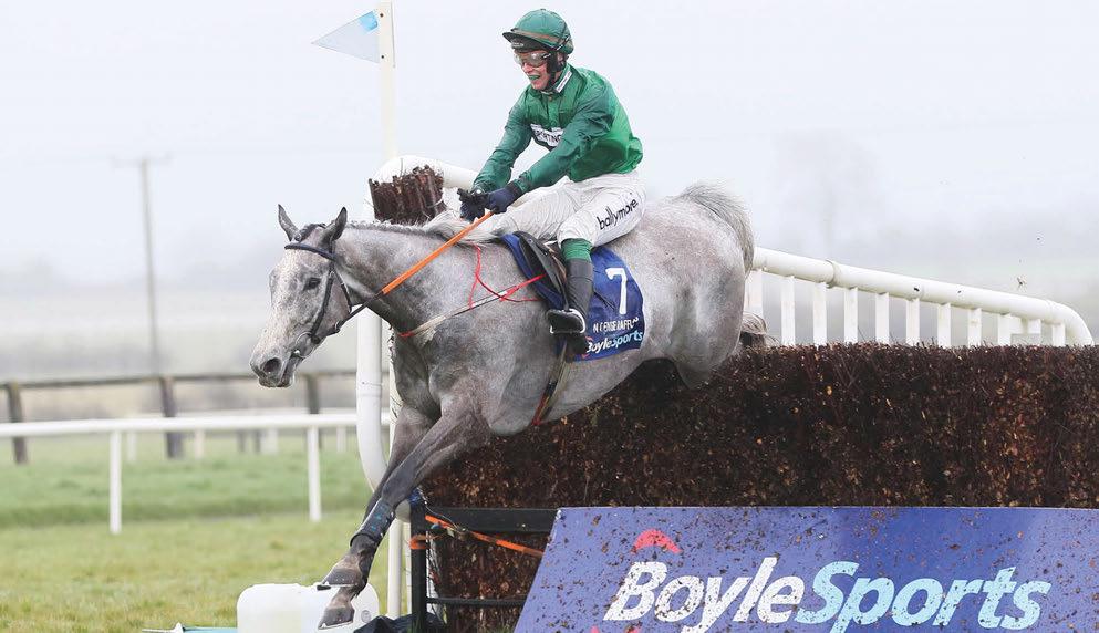 overproduction of racehorses but from a truly sporting perspective, we can surely celebrate the feats of Mullins and O’Brien in becoming British champions, the gaiscí of Galopin Des Champs, City Of Troy, Teahupoo and Porta Fortuna, the blows landed by Pat O’Donnell (Extensio), Pat Foley (Special Wan), Jimmy Mangan (Spillane’s Tower), Tom Gibney (Intense Raffles), Harry Rogers (Lord Erskine) and indeed, John and George Murphy with White Birch.
