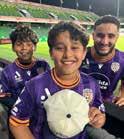 below: Taj and Jai Cosgrave who live in India with their Perth dad Garrett and Mum Sharlene enjoyed a Perth Glory match recently, They were excited to get an autograph on their hat from one of the Glory players. Great kids and pretty handy footballers we are told. Future Australian internationals?