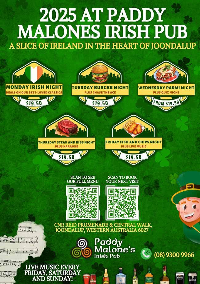 PATRICKS FESTIVAL Saturday 16th March, Leederville Parade and Irish Festival, 10am Join our vintage parade and our presentation of the Brendan Awards 2022 and 2023 at the concert in the early prestigious award recognises individuals or groups with a record of dedicated service and outstanding one or more aspects of Australia's Irish heritage. Meanwhile we invite nominations for 2024 GENERAL MEETING Sunday 24 March, 3pm, Irish Club Committee room. There will be special motions Membership nominations. Please consider joining as a committee member, volunteer or an event coordinator. COMMEMORATION ROCKINGHAM Annual commemoration of the escape of six Fenian convicts With oration, verse, music drama and song at the Catalpa Memorial, Rockingham Beach, Easter 11am to 12 noon. Free public event. Guest speakers and dignitaries including Mayor Deb Hamblin councilors; Federal Minister Madeline King; State Minister Stephen Dawson; Somer Bessire-Briers from U Michael Sheehy; musician Ormonde Og Waters; and more. Coordinated by David McKnight. Thursday 25 April, 8am. AIHA at invitation of Subiaco RSL lay wreaths for Irish ANZACS at Fallen Memorial on the corner of Rokeby and Hamersley roads. Morning tea follows. Subject to confirmation 1 January to 31 December, 2024 membership $65; Concession (Centrelink and unwaged students with ID) $55 from Perth) $45; Membership fee includes tax deductible donation of $20 https://irishheritage.com.au/membership/registration/ Transfer: Bank: Commonwealth, BSB: 066-192 Account No: 1054 6502 approved charity and tax deductable status. Deductable Gift Recipient Status