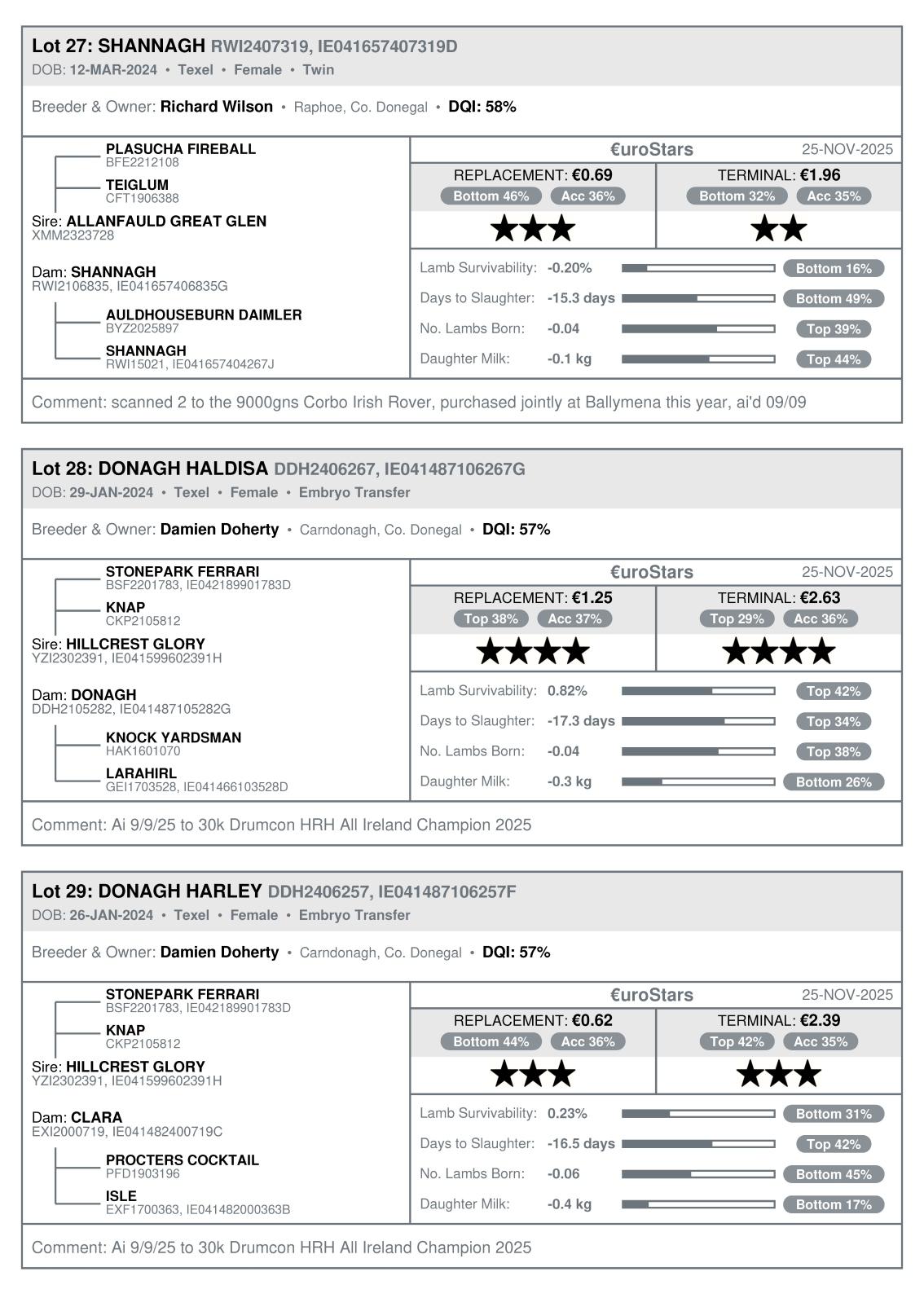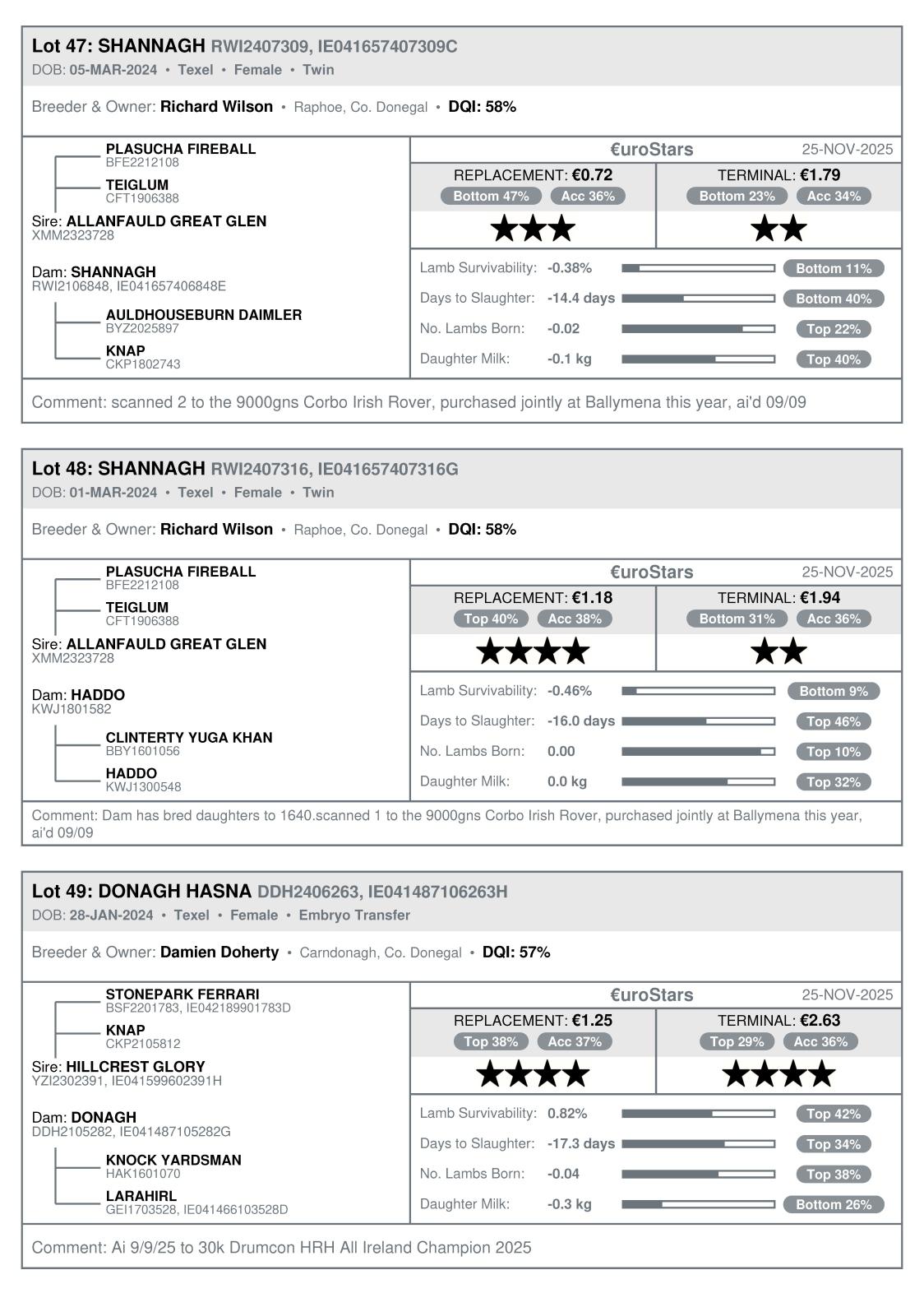 5. Rams and ewes will be sold in Euro guineas and all cheques must be advised to AIB, Ballybofey, Co. Donegal.