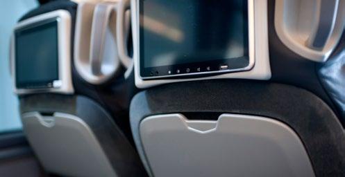 Es totalmente personalizable y aporta el máximo confort para los pasajeros. Un confort que tiene su origen en los más mínimos detalles, como son los monitores de alta resolución de 22”, luces LED en techo, lámparas y pulsadores capacitativos, así como sistemas de entretenimiento de vanguardia, incluyendo pantallas individuales y multimedia.