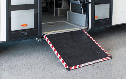 Le large choix de rampes rend cet autocar entièrement accessible. Choisissez entre la rampe manuelle ou automatique pour l'accès des personnes à mobilité réduite avec un couloir large et dégagé, la rampe manuelle à l'avant ou au centre et la rampe télescopique électrique au centre. De plus, les différents sièges disponibles permettent d'adapter le véhicule aux besoins et aux particularités de chaque itinéraire.