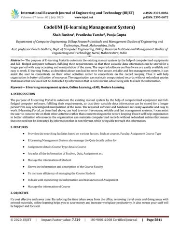 International Research Journal of Engineering and Technology (IRJET) is an peer reviewed, open access, Multidisciplinary journal in English for the enhancement of research in various discipline of Engineering, Science and Technology. Prime Focus of the Journal is to publish articles related to the current trends of research . IRJET brings together Scientists, Academician, Engineers, Scholars and Students of Engineering Science and Technology.Published by Fast Track Publications
