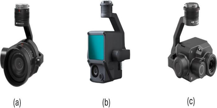Fig -3: Variety of Data Acquisition Devices. a) DJI Zenmuse x5s Camera b) DJI Zenmuse L1 LIDAR Sensor c) DJI Zenmuse XT2 Infrared Sensor.