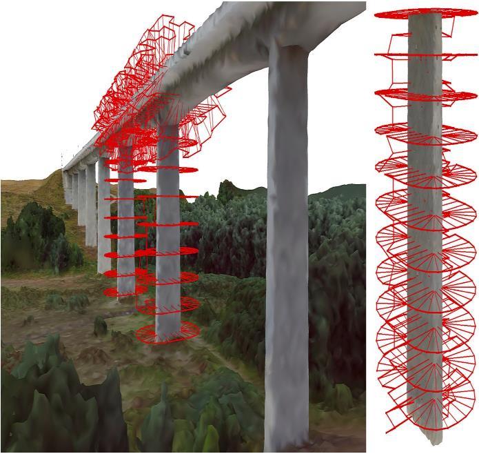 Smaoui et al. focus on optimizing Coverage Path Planning (CPP)fordrones.Theyproposeaback-and-forthmethodto ensure thorough image coverage of the Region of Interest (ROI)whilereducingtimeandenergyuse.Effectivemission management relies on data from positioning systems like GNSS. Morgenthal et al. introduce a method for creating flight paths for automatic image acquisition to aid photogrammetric 3D reconstruction. Using software like Pix4D Capture, they generate virtual models of structures basedoninitialdronesurveysorexistingdata.Viewpoints are located within an offset area around the virtual structure,andanoptimalpathconnectingtheseviewpoints isidentifiedusingtheLin-Kernighan-Helsgaun(LKH)solver algorithm, allowing for autonomous operation through onboardnavigationsystems.Anexampleofthegenerated pathappearsinFig.4Bologninietal.suggestasystemthat separates the identification of POIs from the creation of efficientdronepaths.TheydeterminePOIlocationsbasedon adetailedmeshmodelofabuilding,clusterthemforeasier trajectoryplanning,andsolveaCapacitatedVehicleRouting Problem (CVRP) to ensure efficient navigation while consideringbatterylimits.Zhaoetal.useageneticalgorithm tooptimizethepath,focusingonensuringfull coverageof thebridge.
