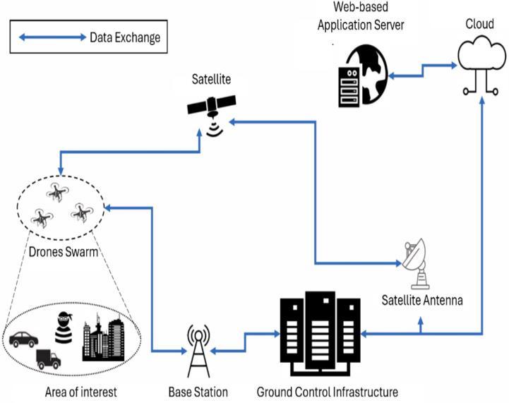 In the IoD, drones are seen as intelligent objects that can communicate with each other and with the GCS to share mission-related data. The GCS serves as the hardware for remote control. It oversees the airspace and tracks the positions of the drones. Typically, the GCS has a high processing capacity because it manages the information received from the drones and transmits it to end users withoutaffectingthelimitedresourcesofthedrones.