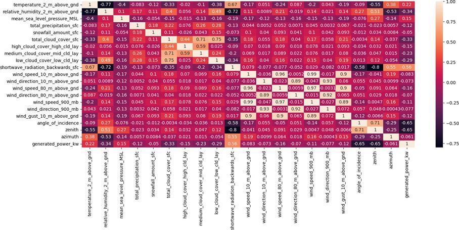 Thedatasetusedinthisstudy,`solar.csv`,contains4,213 entriesand21columns.Thefeaturesincludemeteorological parameters (e.g., temperature, humidity, pressure, wind speed/direction at various altitudes, cloud cover, solar radiation)similartothoseusedinrecentstudies[2,20]and solar geometry parameters (angle of incidence, zenith, azimuth).Thetargetvariableis`generated_power_kw`.