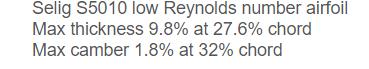 The Actual airfoil of Skywalker X8 is not disclosed by the Manufacturer, but it closely resembles S5010, so we had consideredthisastheAirfoil.