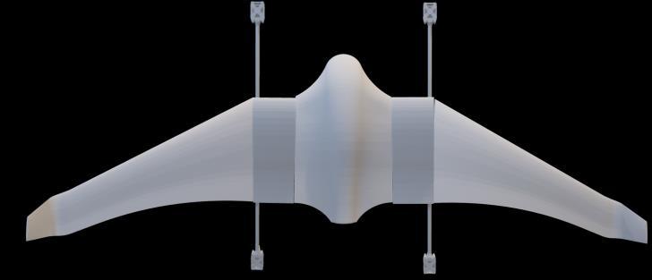 OurProposedFlyingwingisinspiredfromSkywalkerX8. The Skywalker X8 is a well-established and widely used conventionalfixedwingunmannedaerialvehicle(UAV).Itis known for its stability, payload capacity, and endurance, making it suitable for various applications in the field of unmannedaerialsystems(UAS).Forourspecificconversion plan, the process involves modifying the Skywalker X8's airframebyextendingthewingareaandintegratingaboom systemwithmultiplemotors.TheTargetedAUWis7000g.