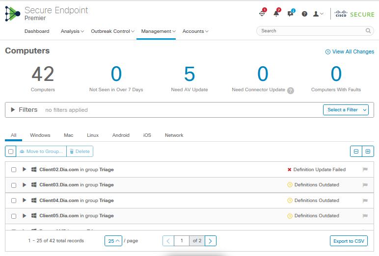 Cisco AMP identified device vulnerabilities, health status, androot-causeanalysesfordetectedthreats.Thesemetrics enhancedvisibilityofendpointcompliance,ensuringup-todatepatchingandanti-malwareintegrity.