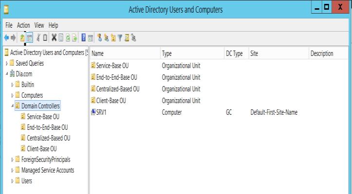 The domain controller (dia.com) was structured into four Organizational Units (OUs) representing distinct IoT architecturaldomainsasshowninFig-6: