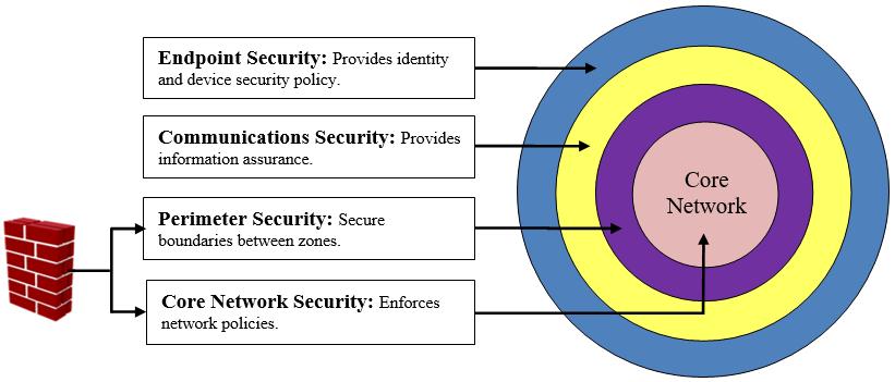 2) Layerednetworksecuritycomponents corenetwork security, perimeter security, communication security, andendpointprotection wereincorporatedtomitigate internalandexternalthreats.
