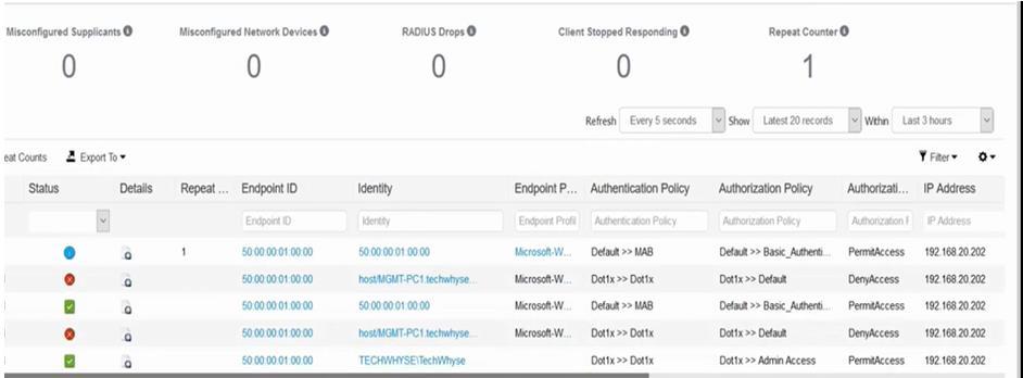 ISE live logs (as shown in Fig -10) recorded detailed the AccessDecisionprocessundervaryingpolicyconditions: