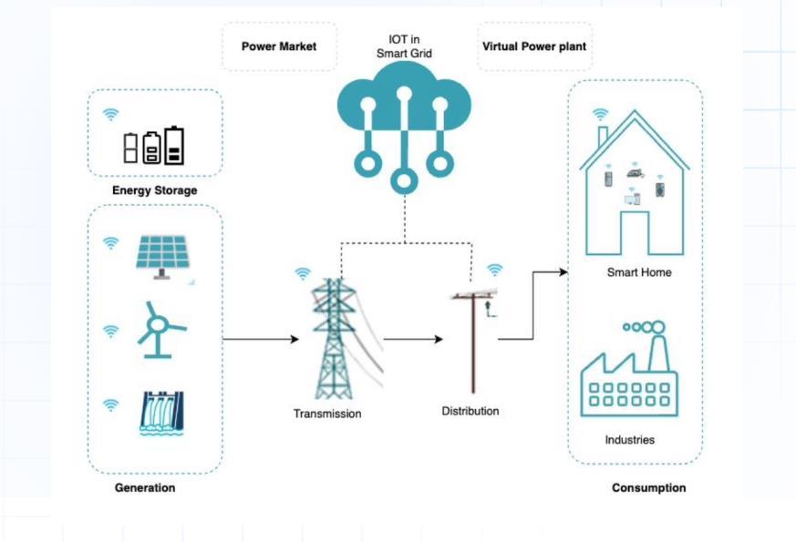 forecasted especially in locations with high renewable penetration (Ahmed & Khalid, 2019). The increase in the Internet of Things (IoT) has added this integration by providing data at high resolution provided by the smart meters, weather stations and distributed energy resources. The sensors that are connected with IoT, communicate the current environmental and operational data to cloud computing to be processed by AI models to update the forecast continuously. As an example, predictive load management adopts the LSTM-based predictions to learn when to deploy the energy storage systems or shed the non-essential loads to ease the grid pressureandoperationalexpense(Riahietal.,2022).