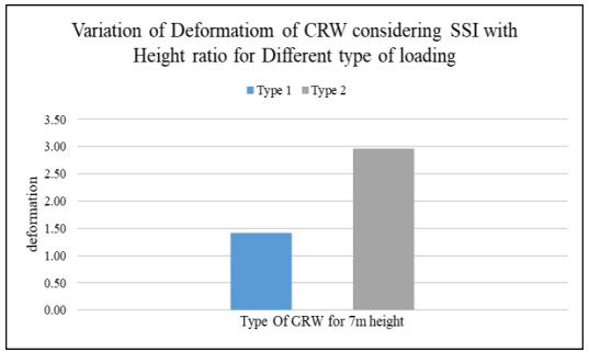 Thehighestdeformationpercentageincludingallheightis only 0.47 percentage as compared to without SSI (that is 99.43percentagereductionisobserved.)inboththeloading conditionsconsideringtheresultsofonlyretainingwall.