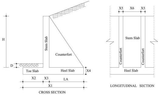 The design of counterfort retaining walls is governed by stabilitycriteria.Dimensionsforvariouswallheightswere calculatedusingaworksheet(detailsprovidedinAppendix