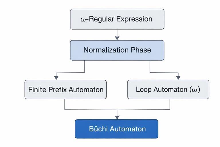 Whilethesemethodsaretheoreticallysound,theyoftenlack structural transparency. Recent research has explored canonicaldecompositions,symbolicautomata,andmodular construction techniques to mitigate state explosion. However, a unified structured framework specifically tailoredtoω-regularexpressionsremainsanopenarea of interest.