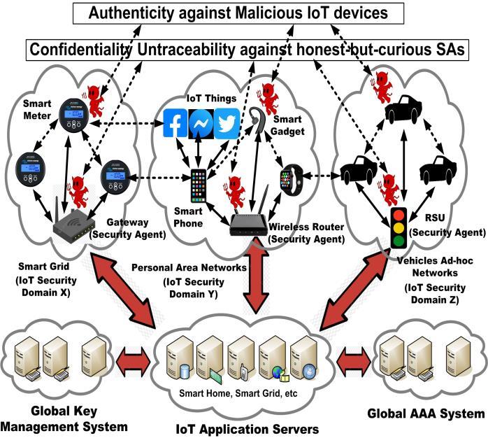 3) End-to-EndSecurity:TheIoTisexpectedtobenotonly vast in scale but also characterized by significant heterogeneity, including a broad range of devices, platforms,networkingprotocols,andtechnologies.Data transmissions will often span multiple administrative boundaries and operate over diverse network infrastructures. As such, security mechanisms must be capableofprovidingend-to-endprotectionsafeguarding dataconfidentiality,integrity,andauthenticitythroughout itsentirejourneyregardlessoftheunderlyingtechnology orownershipdomain[18][19].
