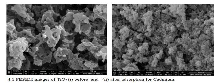 ToexaminetheeffectofconcentrationonthesurfaceofTiO2 forCdadsorptionexperimentswereperformedatdifferent concentration(10-50)ppm.