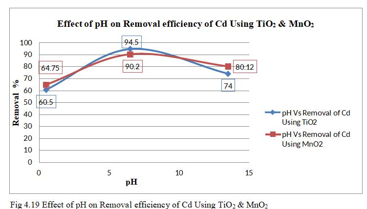 4.5.1 Effect of pH on Removal efficiency of Cd Using TiO2 and MnO2