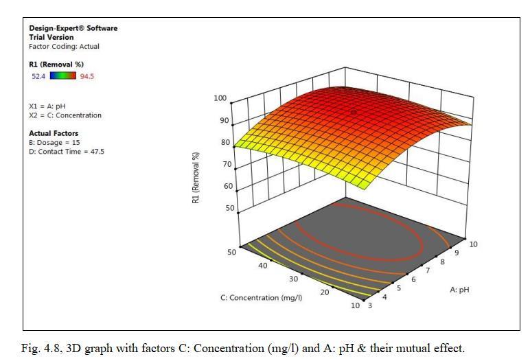 Influenceofconcentrationwasnoticedbyaddingdosageof 15mg,pH6.5withcontacttimeof47.5minutes.