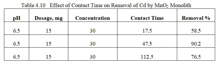 Comparativegraphofvaryingcontacttimeisdrawn toobservetheremovalofCdbymonoliths.