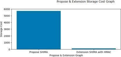 Inthebelowgraphx-axisrepresentsproposedandexisting algorithmnamesandy-axisrepresents‘StorageCost’and in these both techniques HMAC got less storage when comparedtoSHIMAalgorithm.