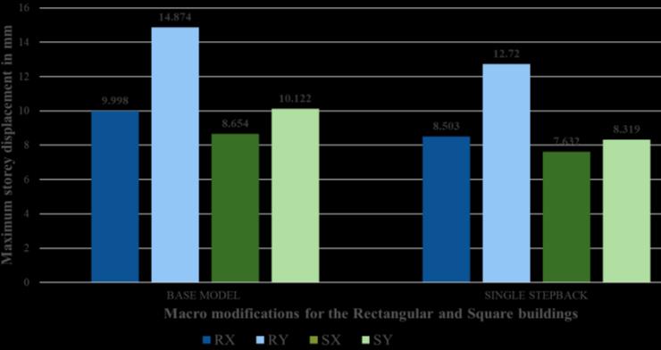 Table 2: ComparisonofMaximumStoreydisplacement forrectangularbuildingandsquarebuildingsofMicro Modification