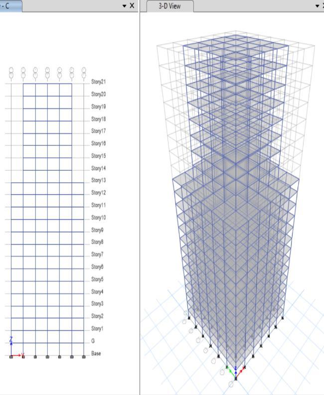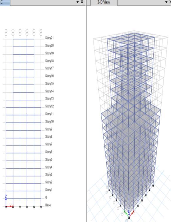Fig-8:Elevationand3-Dviewofsinglesetback modificationforsquaremodel–Macro modification.