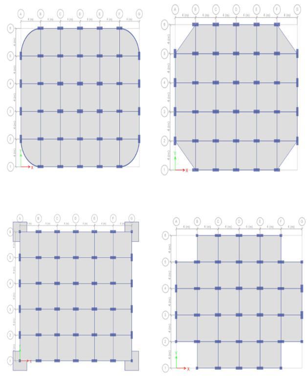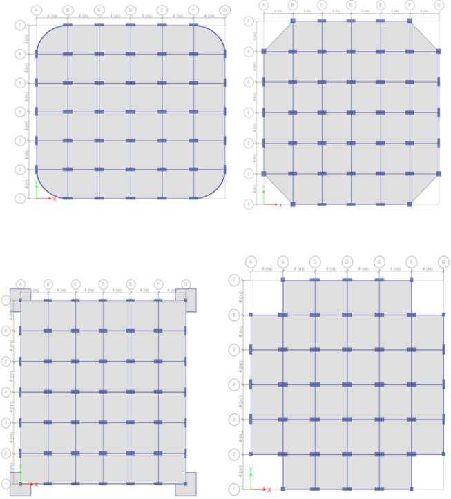 The modelling of the models was carried out in ETABS software.Modeldescriptionandparametersweretabulated below.Initiallytwobasemodelsi.e.,rectangularandsquare modelsweremodelledaccordingtothebelowdescriptions and then the micro, macro modifications were in cooperated.