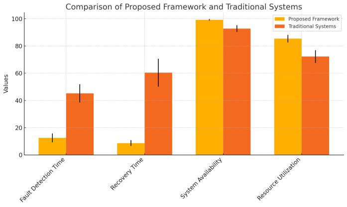 The proposed framework demonstrates significant advancements in fault detection and recovery, achieving an average fault detection time of 12.5 seconds and recovery in 8.7 seconds, markedly outperforming traditional reactive AI systems. Additionally, the system exhibits exceptional operational efficiency, with 99.2% availability and 85.4% resource utilization, surpassing established baselines. Rigorous experimental validation was conducted across three major cloud providers, incorporating diverse synthetic faults and statistically significant evaluations against well-defined benchmarks. Scalability challenges were effectively addressed through a modular orchestration layer and AI-driven optimizations, though trade-offs between computational costs and operational complexity were noted. Future research directions include leveraging advanced deep learning techniques such as graph neural networks, transformer-based models, and ensemble methods to further enhance fault management in complex cloud environments, paving the way for more robust and resilientsystems.