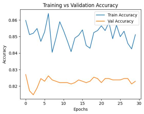 Chart -1: Thechartabovedisplaysthemodel'straining accuracycomparedtoitsvalidationaccuracy.