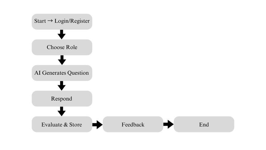 This project's methodology integrates requirements gathering, system design, development, testing, and deploymentinamethodicalmanner.Inordertounderstand what users expected from an AI-powered interview preparationplatform,userrequirementswerefirstcollected throughsurveysandcasualinterviews.Inordertoguarantee scalabilityandmaintainability,modularprincipleswerethen usedinthedesignofthesystemarchitecture.Theplatform's backbonewasformedbytheintegrationoftechnologiessuch asTypeScript,React,Firebase,andGeminiAI.Bothfunctional and non-functional elements, including usability, security, andperformance,weretested.Theproject'smethodologyis depictedinthefollowingdiagram.