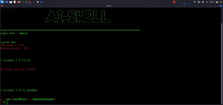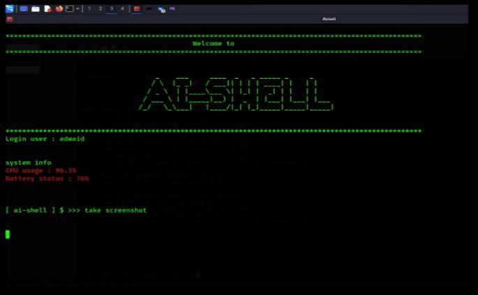 After successful authentication, the shell interface initializes and displays important system information, such as CPU usage, battery status, and network details. This ensures that users have an overview of the system’s currentstatebeforeexecutinganycommands.TheAIshell is now ready to accept natural language inputs, allowing users to interact with the terminal without needing to remembercomplexshellcommands.