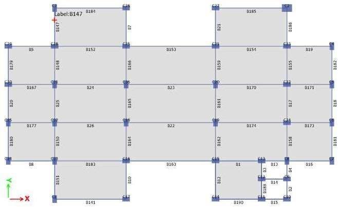 Loadassignmentsinclude dead load, liveload,and seismic load as per IS 875 (Part 1 & 2) and IS 1893. Load combinations are generated automatically in ETABS according to codal provisions. After load application, the ResponseSpectrumMethod isadoptedtoconductdynamic analysis, enabling the extraction of essential response parameters such as lateral displacement, storey drift, time period,and base shear