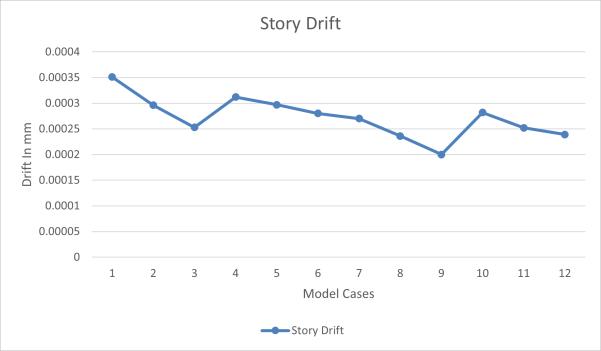 Alldriftvaluesremained well belowIS1893:2016 limits (0.004h),indicatingthatallconfigurations arestructurallysafe.