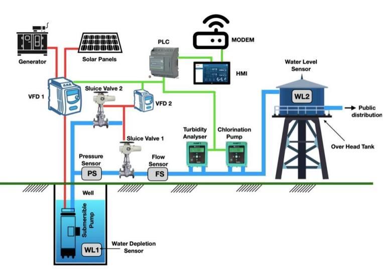 The study explores key aspects of automation, including realtime monitoring of water levels, remote control of pump operations, automated flow regulation, and data-driven decision-making for maintenance and system optimization. The implementation of automated systems significantly reduces human intervention, minimizes energy consumption, and ensures optimal performance under varying water demand conditions. Additionally, the integration of smart sensorsallowsforpredictivemaintenance,reducingdowntime and enhancing the longevity of infrastructure.