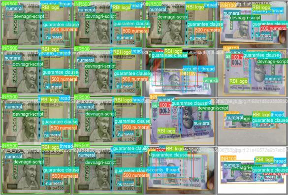 Tovalidatethemodelinquestion,wecollectedadataset of 925 images of real and counterfeit Indian currency notesof100,200,and500INR.Thedatasetisgenerated using Roboflow and is split into 840 images for training and 85 images for testing/validation.Taken by a mobile phone with changing lighting conditions and angles, it makesthemodelmorerobust.Realnotesweregathered naturally and annotated, and forged ones were imitated by omitting the characteristics such as the Devanagari script, Ashoka emblem, and security threads using Picsart