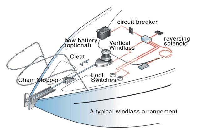 Anchor winch: Electricorhydraulicwinchfordeploying andretrievingtheanchor.