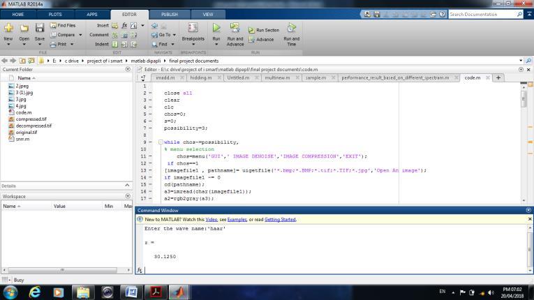 Key Words: BiomedicalImageProcessing,DiscreteWavelet Transform (DWT), Image Denoising, Image Compression, PeakSignal-to-NoiseRatio(PSNR),MATLAB.