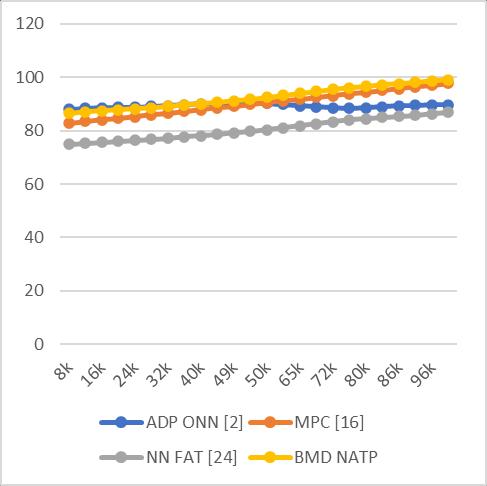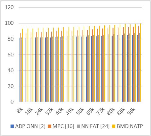 Asperthisevaluationandchart4,itcanbeobservedthatthe proposedmodelisabletoimprovethespeedofclassification by10.5%whencomparedwithADPONN[2],18.3%when comparedwith[R2[,and6.5%whencomparedwithNNFAT [24],whichmakesitusefulforawidevarietyofhigh-speed network scenarios. This speed is improved due to integration of Bacterial Foraging Optimization (BFO) and ensemble classification operations. Due to these optimizations,theproposedmodeliscapableofimproving attackidentificationperformanceunderstaticanddynamic networkscenarios.