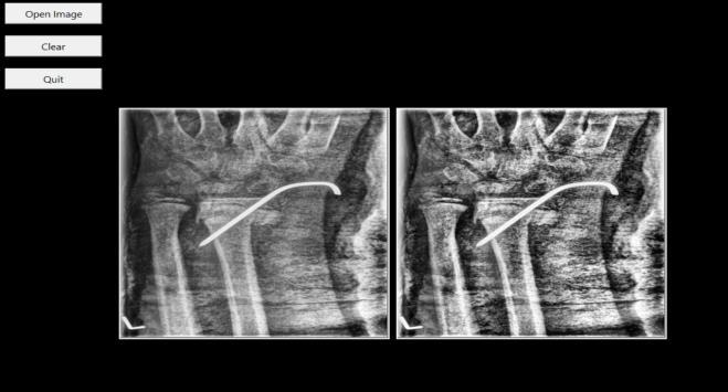The integration of CLAHE preprocessing significantlyenhancedimageclarity,improvingthevisibility of bone structures and fracture regions. Furthermore, the system’sTkinter-basedGUIenableseasyimageupload,realtime detection, and result visualization, making it userfriendly for both medical practitioners and patients. The inclusionofadynamictreatmentrecommendationmodule