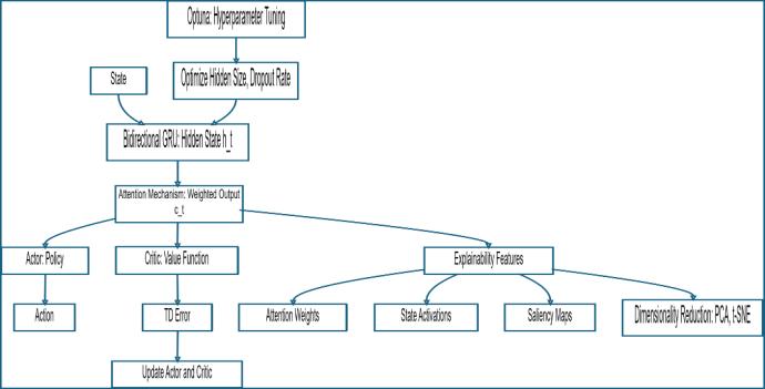 The ExActor-Critic framework introduces a novel approach to reinforcement learning (RL) by prioritizing explainabilitywithoutcompromisingperformance.Building on the traditional Actor-Critic architecture, it integrates advanced mechanisms such as Gated Recurrent Units (GRUs),attentionmechanisms,anddimensionalityreduction techniques to enhance interpretability and transparency. Thesecomponentsenabledeeperinsightsintothedecisionmaking processes of RL agents, making the model more understandable and reliable. Figure 1 illustrates a comparisonbetweenthebasevariantofExActor-Criticand theconventionalActor-Criticframeworks.