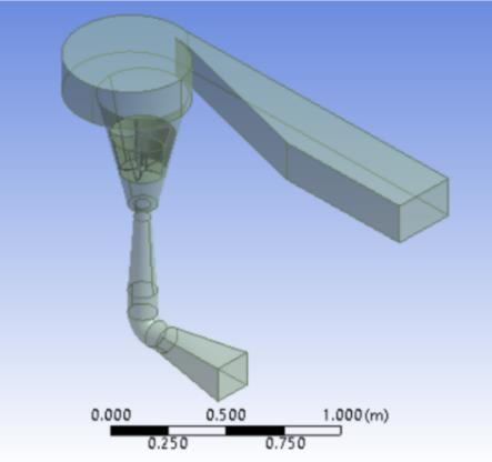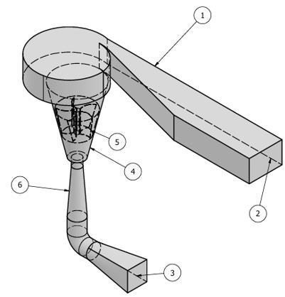 Thegeometryofthestudywascarriedoutbyaddingadraft tubetothevortexturbineoutletchannelasshowninFigure 1. The main components ofthe vortex turbine consist ofa channel(1),Inletofthechannel(2),outletofdrafttube(3), basin(4),runner(5)anddrafttube(6).Thevortexturbine worksbychannelingtheflowcapacityflowinginthechannel to the turbine basin. In the turbine basin, the flow is convertedintoavortexflowandusedtodrivetherunnerso that the turbine runner can produce torque and turbine outputpower.