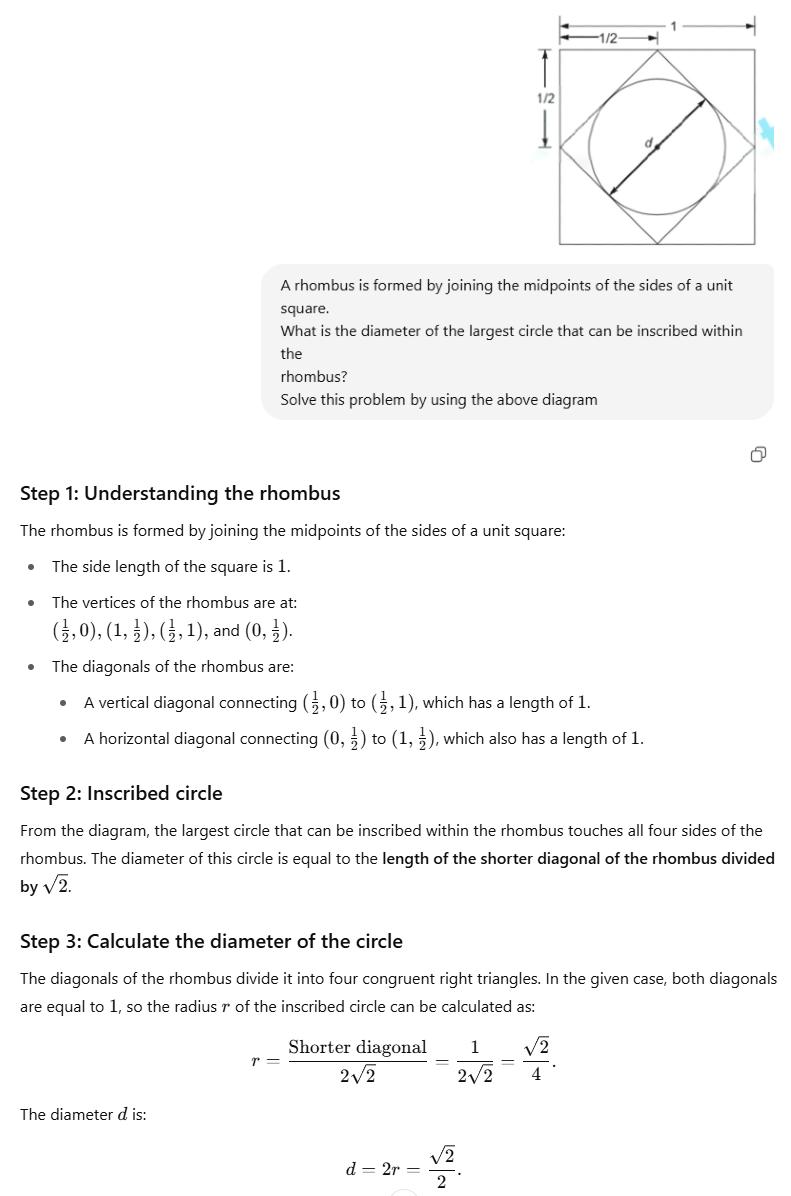 Fig -4.1: Screenshot of Rhombus problem solved in GPT-4.5 (without CoT)