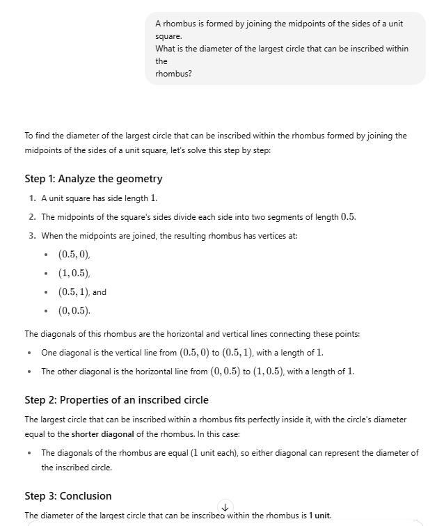 Fig -4.2: Screenshot of Rhombus problem solved in GPT-4.5 (with CoT)