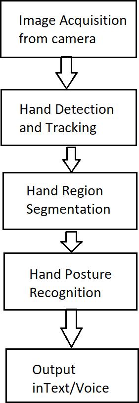 software components that work together to achieve real-time performance. The overall system is divided into five main modules:InputAcquisitionUnit,Pre-processingUnit,FeatureExtractionand ClassificationUnit,Gesture-to-TextMapping Unit,andText-to-Speech(TTS)OutputUnit.Thesecomponentscommunicatethroughastructuredworkflowthatensures accuraterecognitionandfastresponse.
