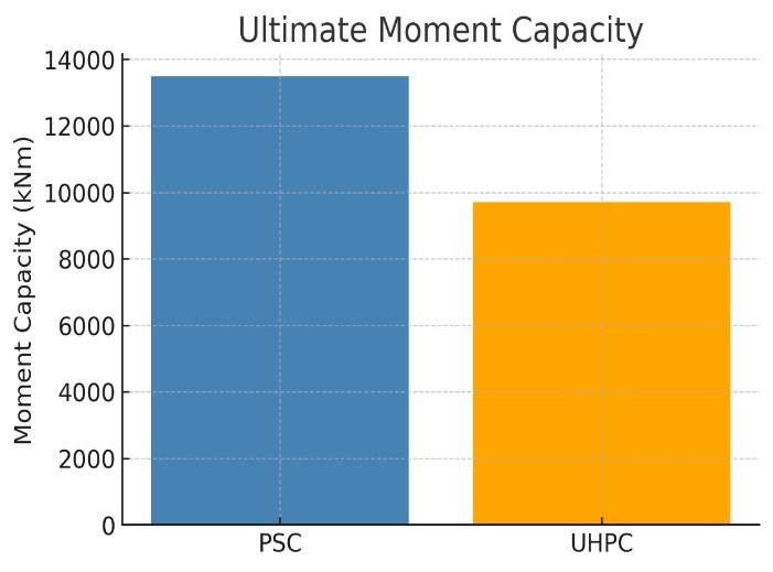 Structural Efficiency: WhilethespecificUHPCdesigninthis studyhada lowerultimate capacitydueto the absence of prestressing, its material properties suggest potential for higherefficiencywhenfullyoptimized.