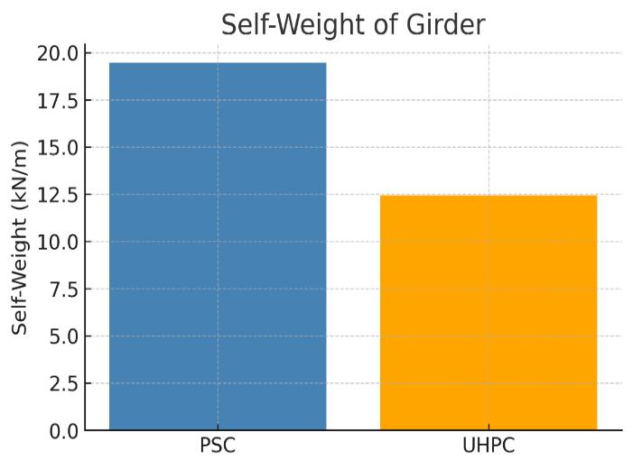 Weight and Size: UHPCgirdersaresignificantlylighterand moreslender,withuptoa36%reductioninself-weightand a33%reductionindepthcomparedtoPSCgirders.