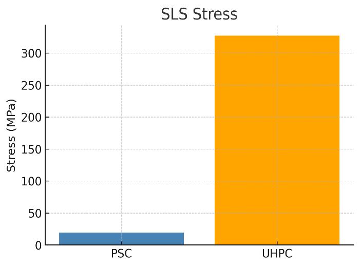 UHPC’ssmallercross-section(0.497m²vsPSC’s0.778m²) reducesitsself-weightby~36%.